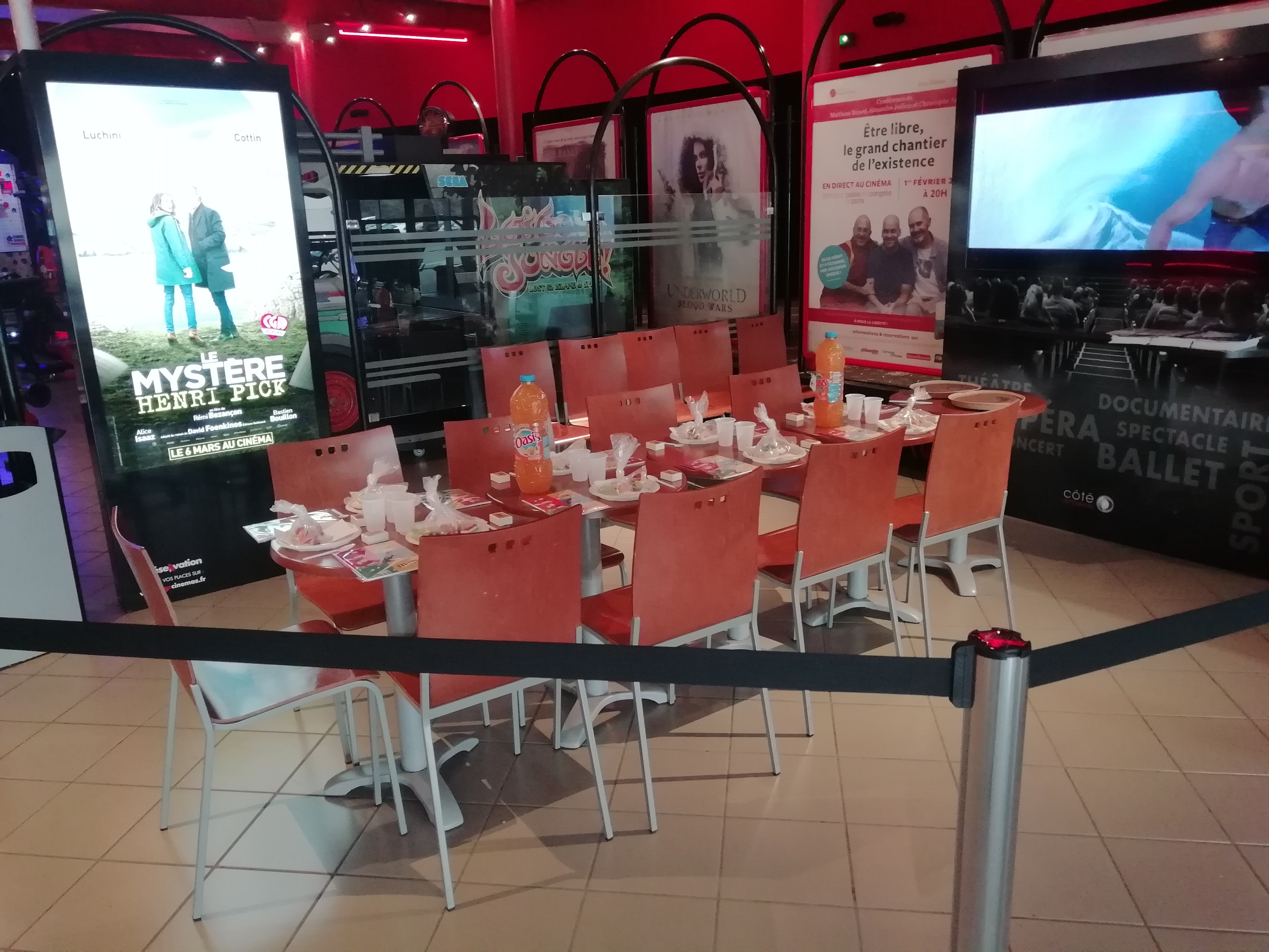 Très bon endroit Plusieurs jeux sont à disposition en attendant la séance Faudrait avoir quelqu'un en continue pour la vente des boissons et sucreries